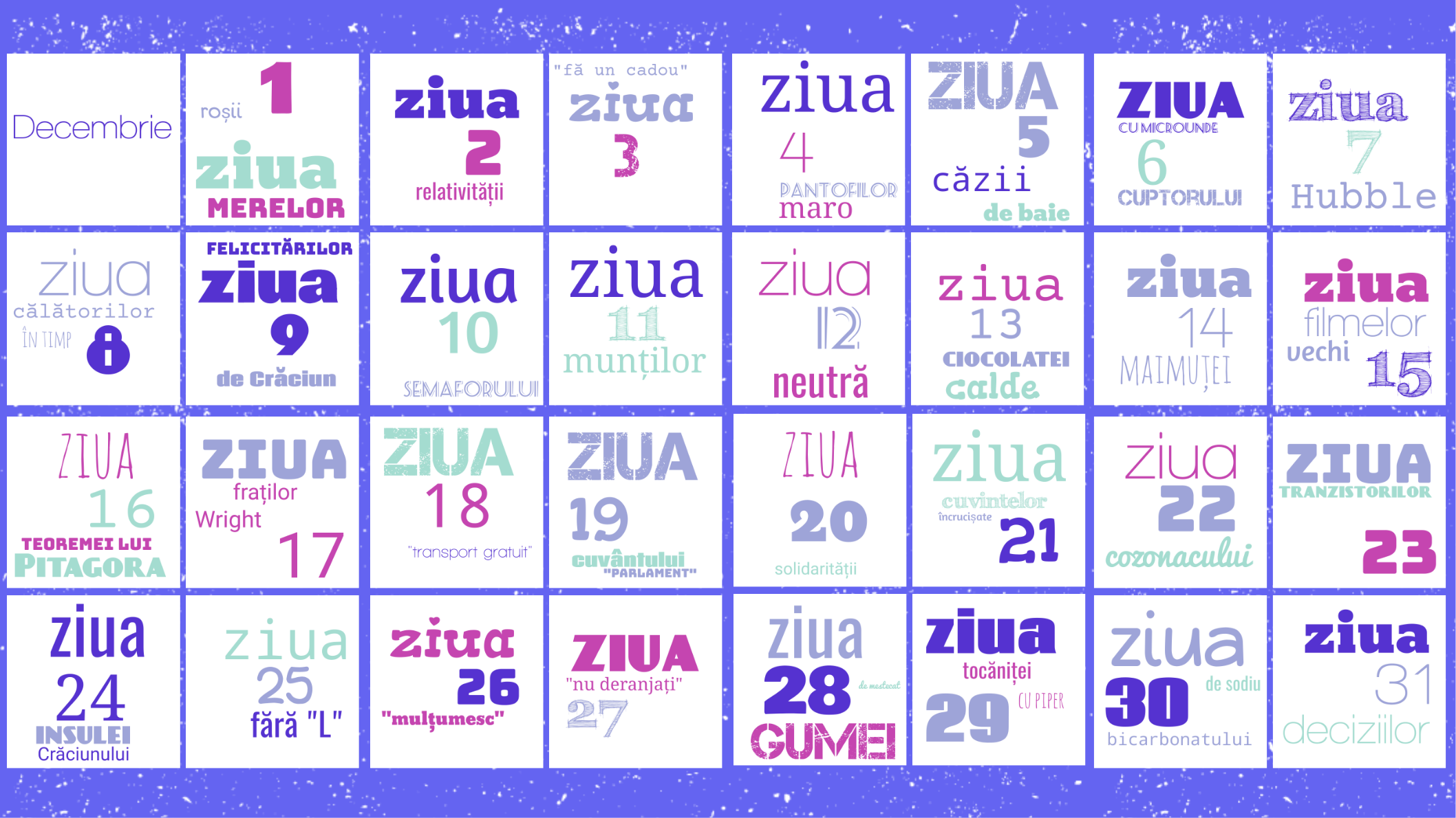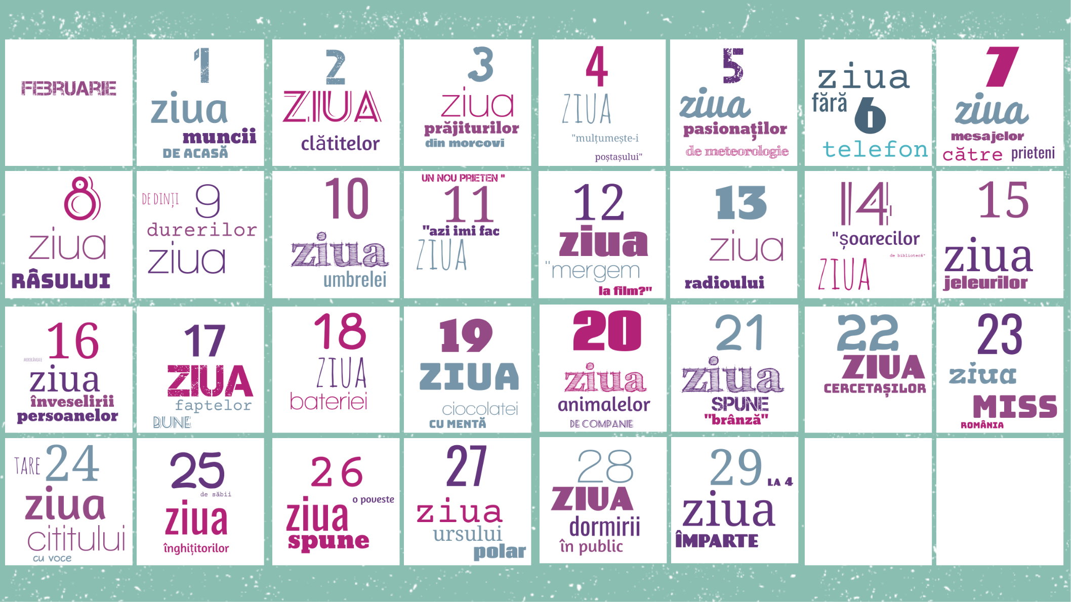Participare conform capacităților = acest calendar-joc este pentru toți, 366 de zile – fiecare găsind ocazia de a face corespondențe amuzante